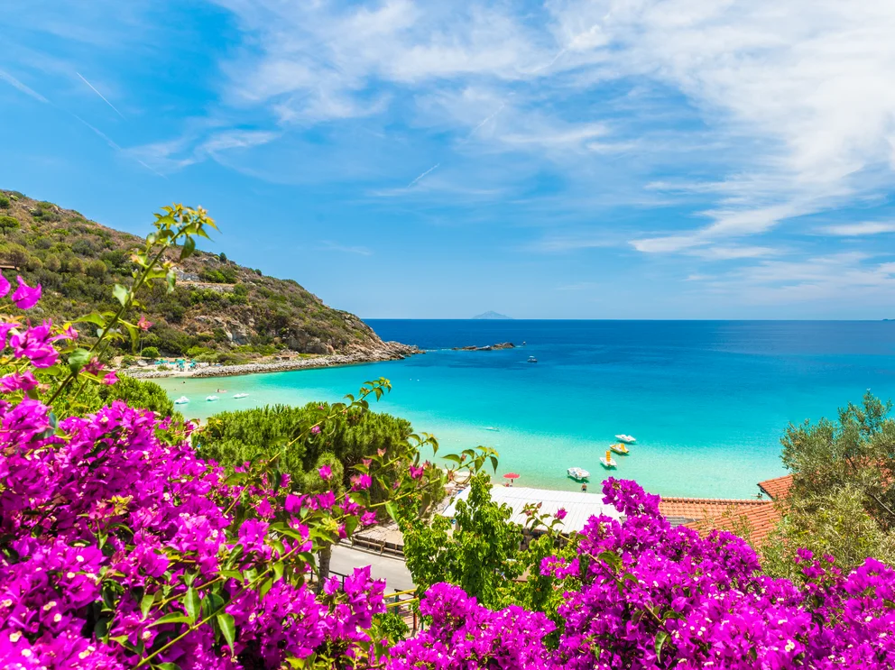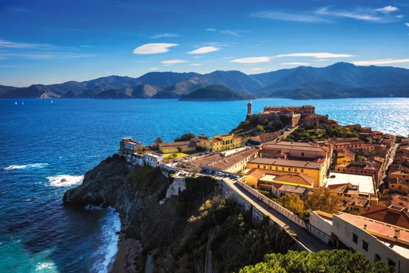 Die Insel Elba, eine grüne Oase im Toskanischen Archipel, ist die Insel des unendlichen Horizontes. Goldene Strände, die vom kristallklaren Wasser gestreichelt werden, Granitfelsen inmitten der mediterranen Buschvegetation, Geschichten von Völkern, die immer von der Sonne geküsst wurden. Bunt blühende Maccia und Felslandschaften, die von Olivenhainen durchzogen werden, bilden eine Symbiose mit weitläufigen Stränden und einzigartigen Buchten. Auch die Geschichte hat deutliche Spuren hinterlassen: Etrusker, Römer und die Medici haben die Insel jahrhundertelang geprägt. Der berühmteste Insulaner war zweifellos Napoleon, der dorthin ins Exil verbannt wurde. Er fühlte sich auf dieser paradiesischen Insel aber nicht als Gefangener, sondern als König der Insel.