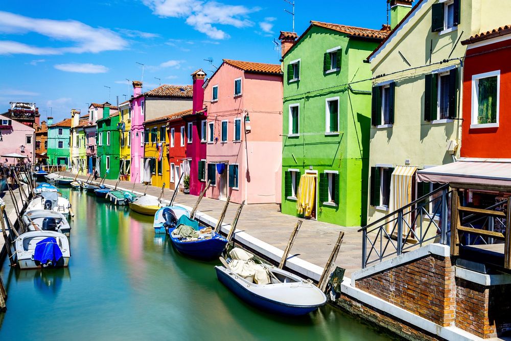 Burano liegt in der nördlichen Lagune von Venedig, etwa 7 Kilometer von der Stadt Venedig entfernt. Geografisch ist die Insel von zahlreichen Kanälen umgeben und zeichnet sich durch ihre flachen, malerischen Wasserwege aus. Burano ist gut erreichbar mit Vaporetto-Booten, die regelmäßig von Venedig und anderen nahegelegenen Inseln abfahren. Die zentrale Lage in der Lagune macht Burano zu einem idealen Ziel für Tagesausflüge, um die Schönheit der venezianischen Lagune und die anderen Inseln wie Murano und Torcello zu erkunden. Die Kombination aus historischer Bedeutung, atemberaubender Landschaft und der Möglichkeit, die venezianische Kultur zu genießen, macht Burano zu einem unverzichtbaren Ziel für Reisende, die die Vielfalt und den Charme dieser einzigartigen Region entdecken möchten.