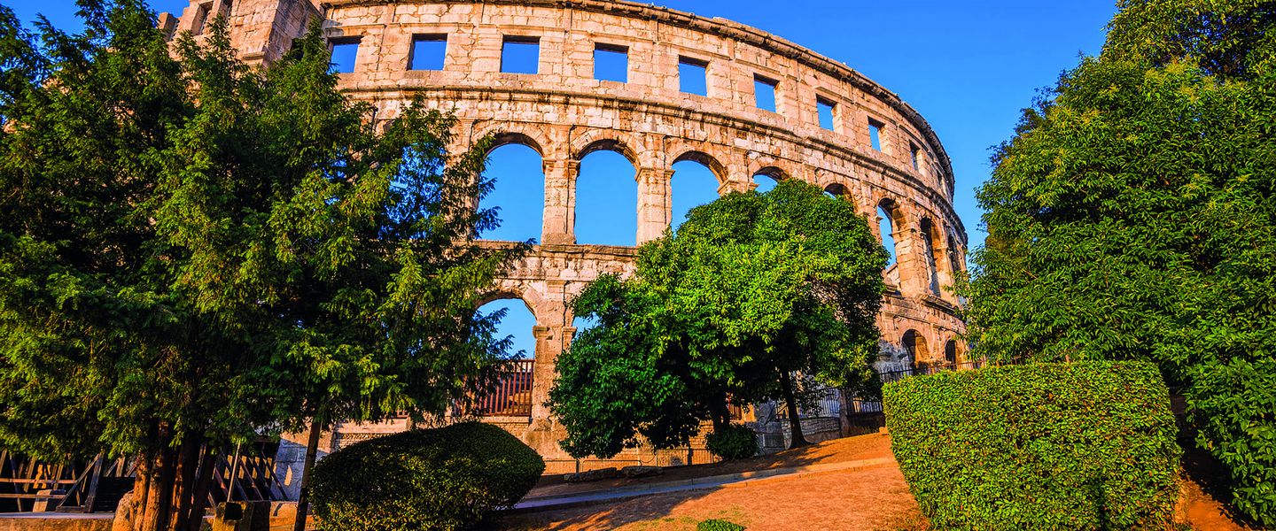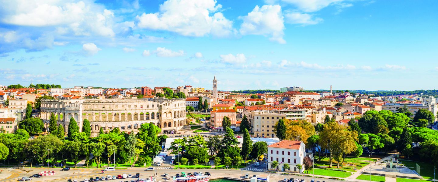 3. Tag: Heute wird Pula erkundet, neben dem Amphitheater welches zu den besterhaltenen römischen Amphitheater der Welt zählt erkunden Sie den Tempel des Augustus. In der Altstadt von Pula, mit ihren engen Gassen und historischen Gebäuden sehen Sie den Triumphbogen der Sergier, einen römischen Triumphbogen, der im 1. Jahrhundert v. Chr. erbaut wurde. Sie erfahren mehr über die Geschichte von Pula, von der römischen Zeit bis zur Gegenwart, und haben auch genügend Freizeit um die lokale Küche zu probieren und einige der besten kroatischen Weine zu verkosten. Nachmittags Rückfahrt zum Hotel - Abendessen im Hotel