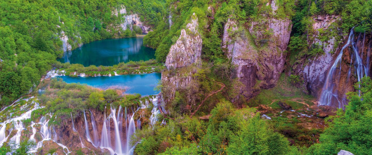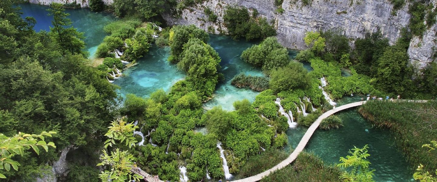 Der Nationalpark Plitvicer Seen ist für seine kaskadenförmig angeordneten Seen weltbekannt. Inmitten einer einzigartigen Naturlandschaft aus dunklen Wäldern und glasklarem Wasser befindet sich diese traumhafte Welt aus türkisen Seen und unzähligen Wasserfällen.