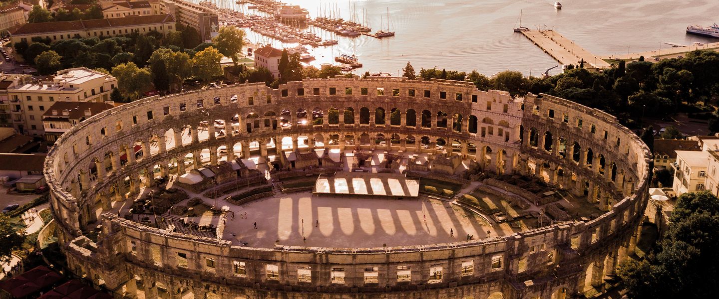 Der letzte Tag Ihrer Reise beginnt in Rovinj und führt Sie auf der Mittelmeer-Route nach Pula, der ältesten Stadt Istriens. In Pula angekommen, besichtigen Sie das imposante römische Amphitheater. Radstrecke: 40km / 210hm