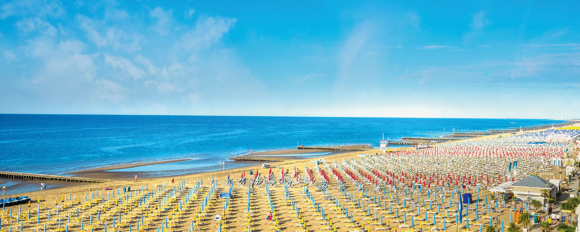 Die italienische Adria ist mit den kilometerlangen Stränden und der familiären Atmosphäre eine beliebte Anlaufstelle für den Sommerurlaub. Sonnenanbeter kommen in Jesolo voll auf ihre Kosten, denn der beliebte Badeort besticht mit einem 15 km langen Sandstrand.